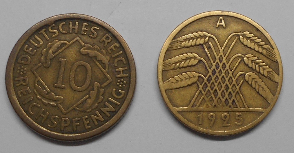 GERMANY WEIMAR REPUBLIC 10 Reichspfennig 1925 A