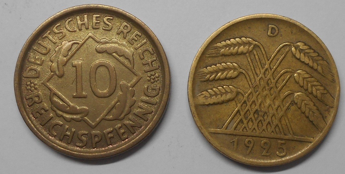 GERMANY WEIMAR REPUBLIC 10 Reichspfennig 1925 D