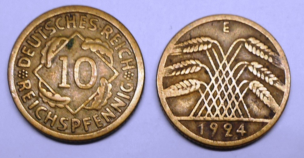 GERMANY WEIMAR REPUBLIC 10 Reichspfennig 1924 E
