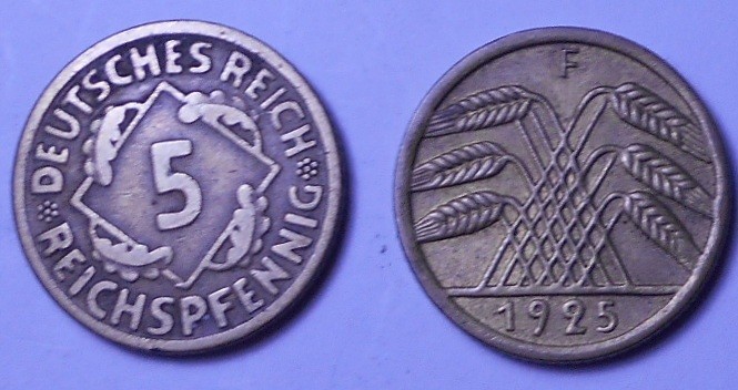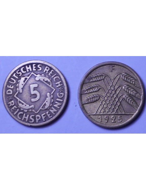 GERMANY WEIMAR REPUBLIC 5 Reichspfennig 1925 F small 5