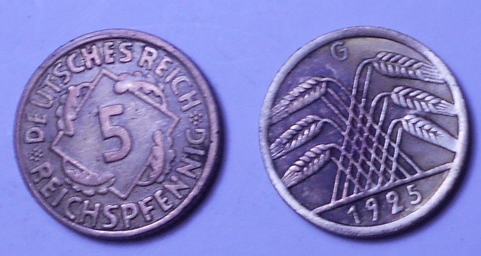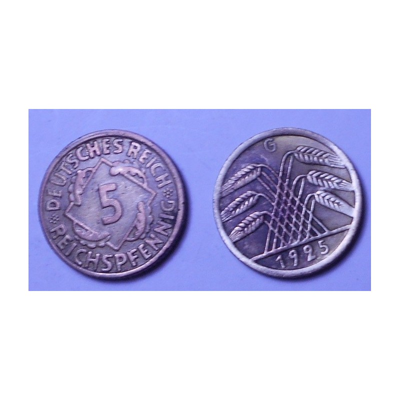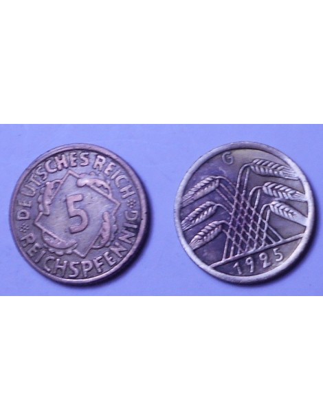 GERMANY WEIMAR REPUBLIC 5 Reichspfennig 1925 G