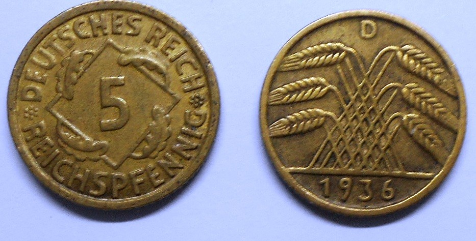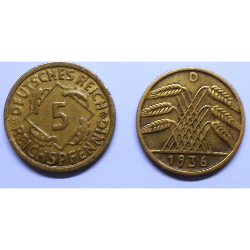 GERMANY WEIMAR REPUBLIC 5 Reichspfennig 1936 D