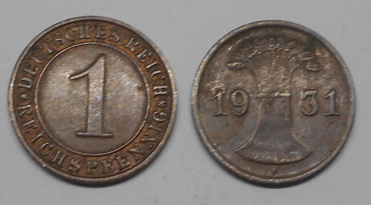 GERMANY WEIMAR REPUBLIC 1 Reichspfennig 1931 F