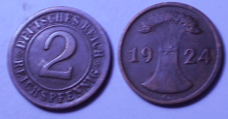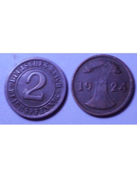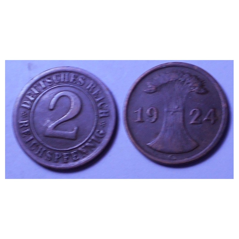 GERMANY WEIMAR REPUBLIC 2 Reichspfennig 1924 G