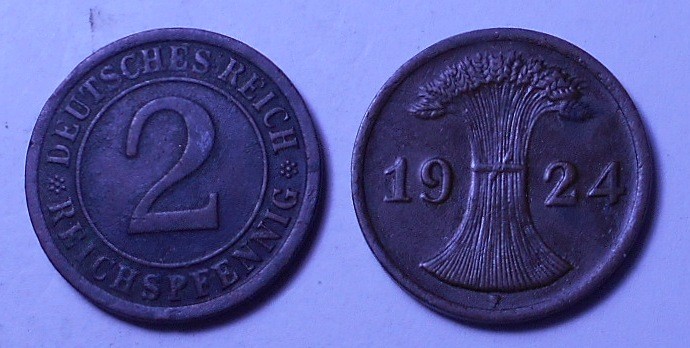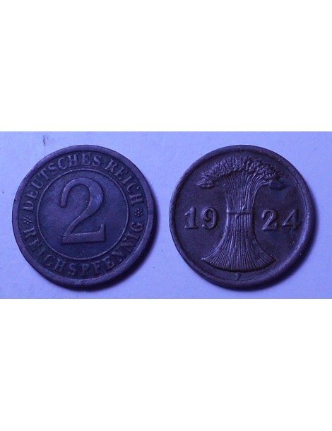 GERMANY WEIMAR REPUBLIC 2 Reichspfennig 1924 F