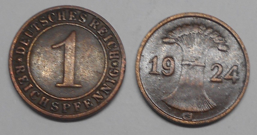 GERMANY WEIMAR REPUBLIC 1 Reichspfennig 1924 G