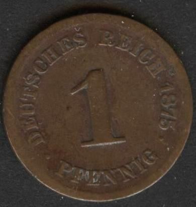 GERMANY EMPIRE 1 Pfennig 1875 F