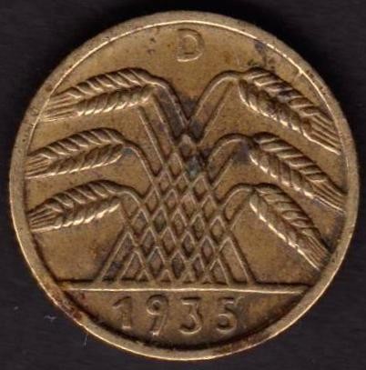 GERMANY WEIMAR REPUBLIC 5 Reichspfennig 1935 D