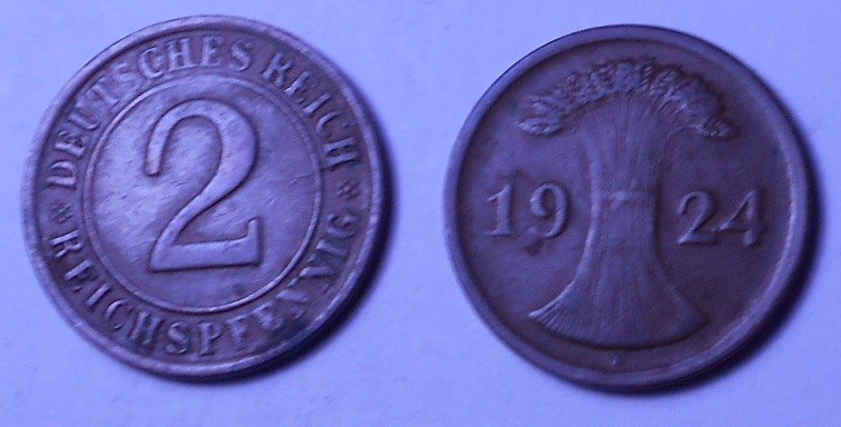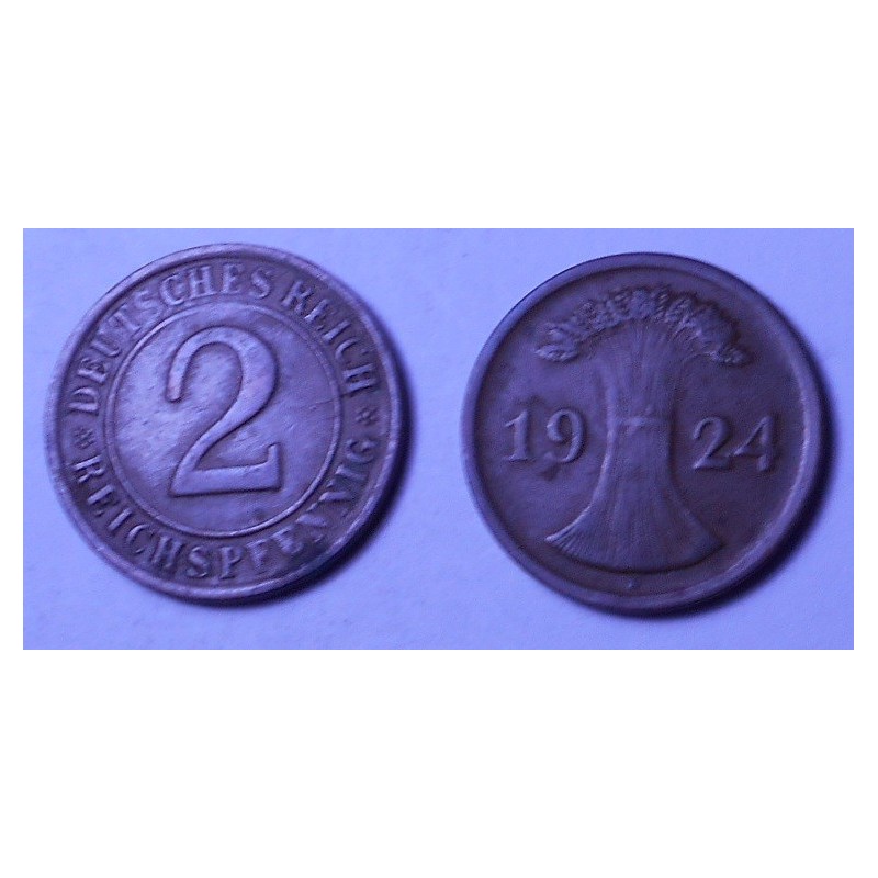 GERMANY WEIMAR REPUBLIC 2 Reichspfennig 1924 D