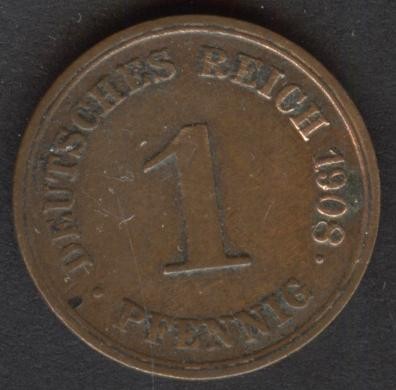 GERMANY EMPIRE 1 Pfennig 1908 G