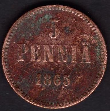 FINLAND 5 Pennia 1865