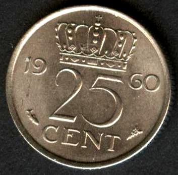 NETHERLANDS 25 Cents 1960