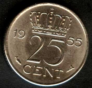 NETHERLANDS 25 Cents 1955