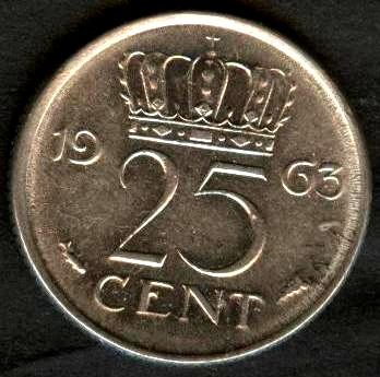 NETHERLANDS 25 Cents 1963