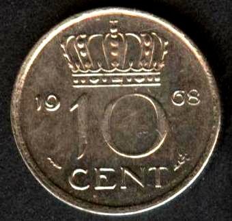 NETHERLANDS 10 Cents 1968