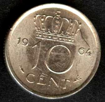 NETHERLANDS 10 Cents 1964