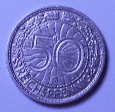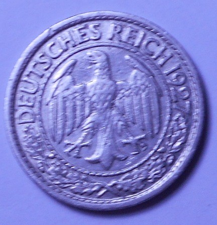 GERMANY WEIMAR REPUBLIC 50 Reichspfennig 1927 F