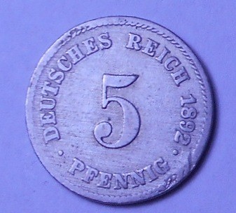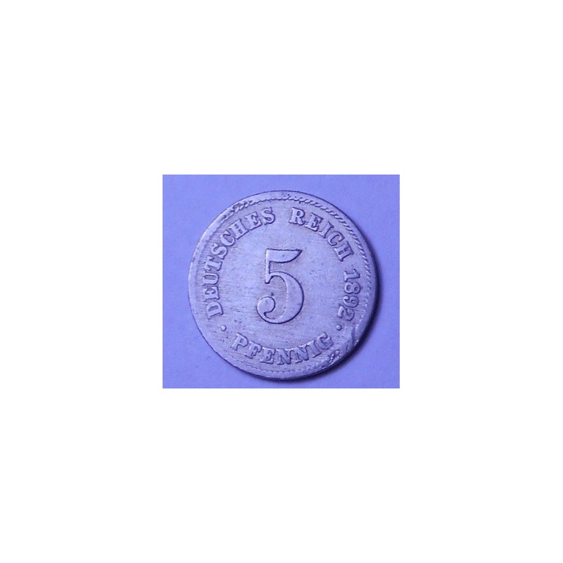 GERMANY EMPIRE 5 Pfennig 1892 F