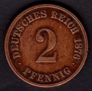 GERMANY EMPIRE 2 Pfennig 1876 A