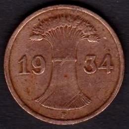 GERMANY WEIMAR REPUBLIC 1 Reichspfennig 1934 F