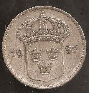 SWEDEN 10 Ore 1937 AG