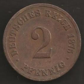 GERMANY EMPIRE 2 Pfennig 1875 B