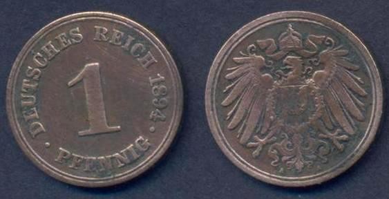 GERMANY EMPIRE 1 Pfennig 1894 A