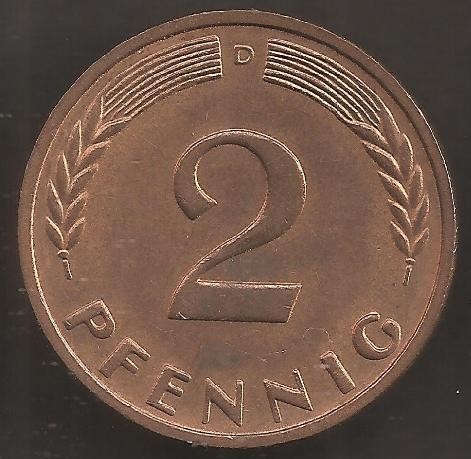 GERMANY FEDERAL REPUBLIC 2 Pfennig 1965 D