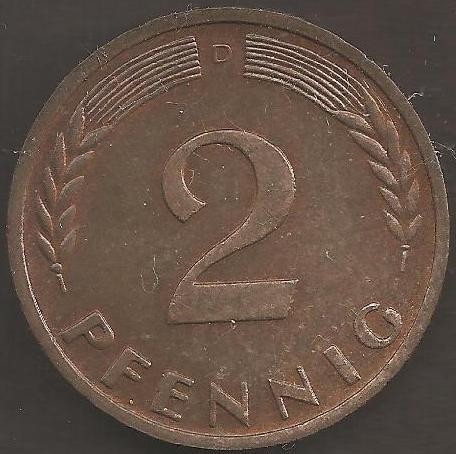 GERMANY FEDERAL REPUBLIC 2 Pfennig 1964 D