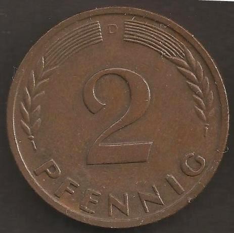 GERMANY FEDERAL REPUBLIC 2 Pfennig 1958 D