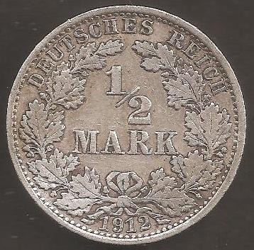 GERMANY EMPIRE 1/2 Mark 1912 A