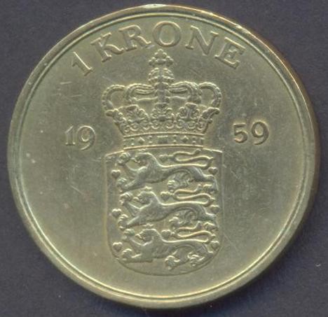 DENMARK 1 Krone 1959 Rare
