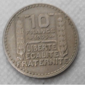 FRANCE 10 Francs 1945 Rameaux courts rare