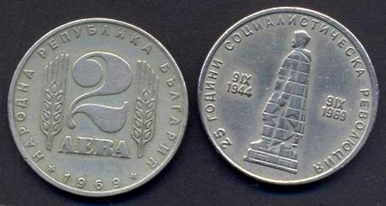 BULGARIA 2 Leva 1969 Anniversary Socialist Revolution
