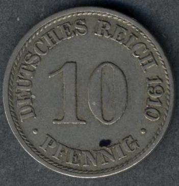 GERMANY EMPIRE 10 Pfennig 1910 A