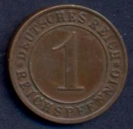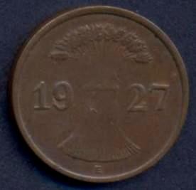 GERMANY WEIMAR REPUBLIC 1 Reichspfennig 1927 E