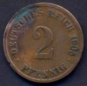 GERMANY EMPIRE 2 Pfennig 1905 D