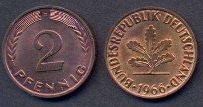 GERMANY FEDERAL REPUBLIC 2 Pfennig 1966 F