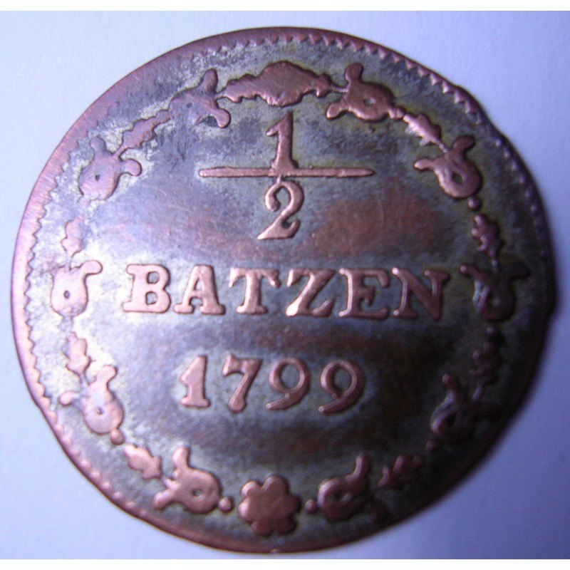 SWITZERLAND 1/2 Batzen 1799