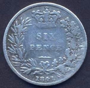 GREAT BRITAIN 6 Pence 1841 AG Victoria