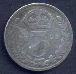 GREAT BRITAIN 3 Pence 1895 AG Victoria