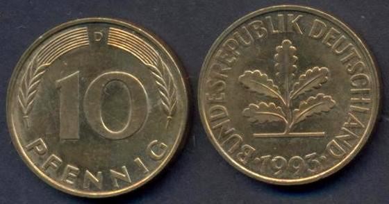 GERMANY FEDERAL REPUBLIC 10 Pfennig 1993 D
