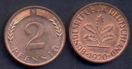 GERMANY FEDERAL REPUBLIC 2 Pfennig 1970 D