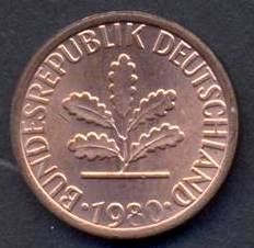 GERMANY FEDERAL REPUBLIC 1 Pfennig 1980 G