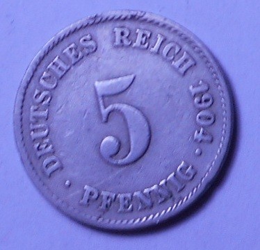 GERMANY EMPIRE 5 Pfennig 1904 J