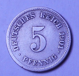 GERMANY EMPIRE 5 Pfennig 1901 E