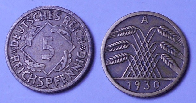 GERMANY WEIMAR REPUBLIC 5 Reichspfennig 1930 A