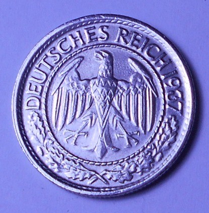 GERMANY WEIMAR REPUBLIC 50 Reichspfennig 1937 A