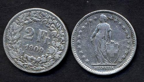 SWITZERLAND 2 Francs 1909 AG