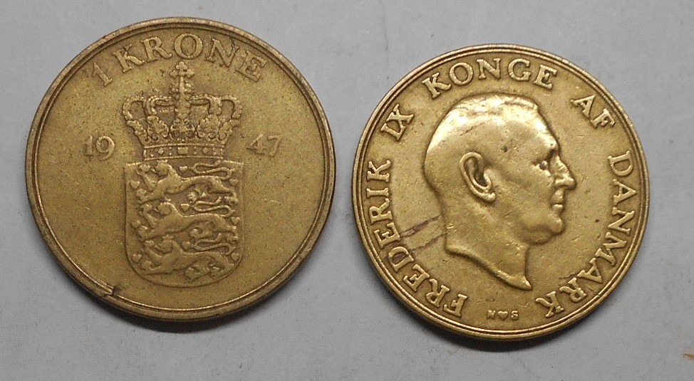 DENMARK 1 Krone 1947 KM 837.1